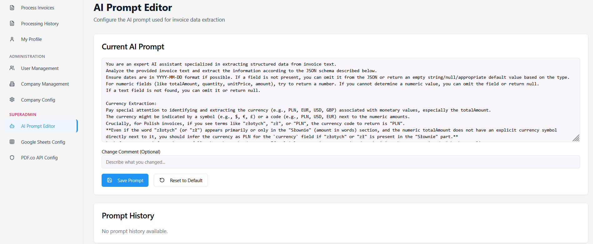 A PoC web app for automated invoice processing, integrating pdf.co API, LLM (Gemini), and Google Sheets for flexible setup and centralized management.